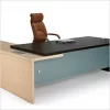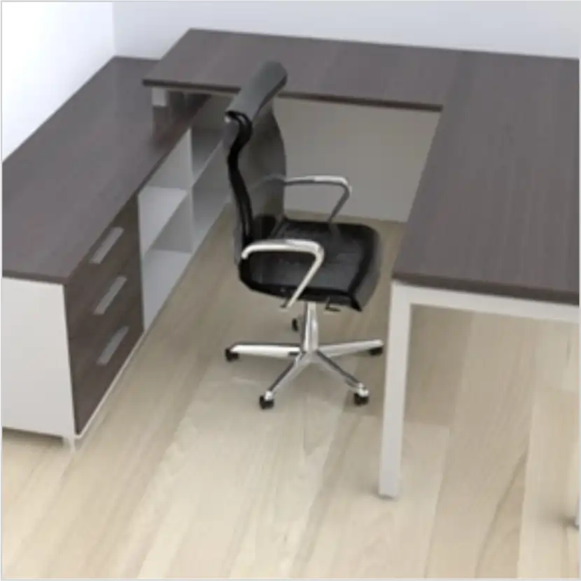 Escritorio de 1.50×1.50 con mueble credenza. Conformado por superficie de 1.50×60 y retorno de 90×50. Fabricado en lámina de aglomerado contra enchapado laminado en fórmica de 30mm con canto rígido. Base 4 patas con chambrana en tubo 4×4 con acabado en pintura electroestática en color blanco.